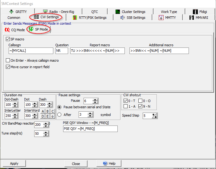 | CQ Mode | ON | Enable ESM for CW CQ Mode |